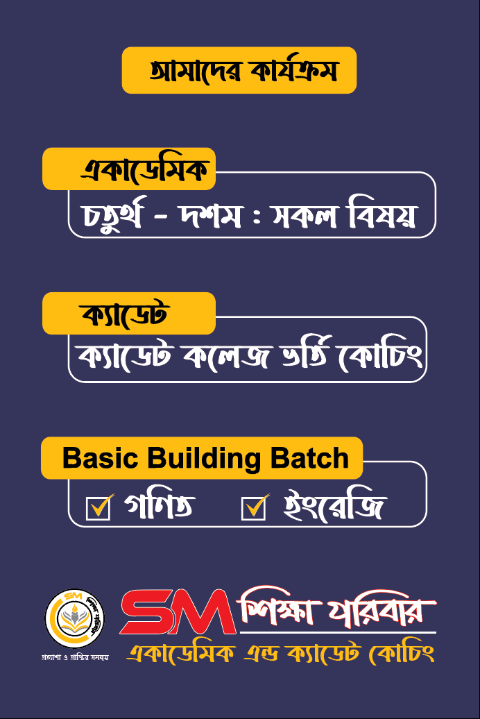 SM Shikkha Poribar House-1/8, Road-19, Block-B, Section-10, Mirpur, Dhaka-1216, Bangladesh Email: smsp.edu.bd@gmail.com Contact: 01814-211688, 01601-211688
