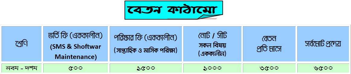 | Exam Fee (Weekly, Monthly Exam) for one time | 1500/= |